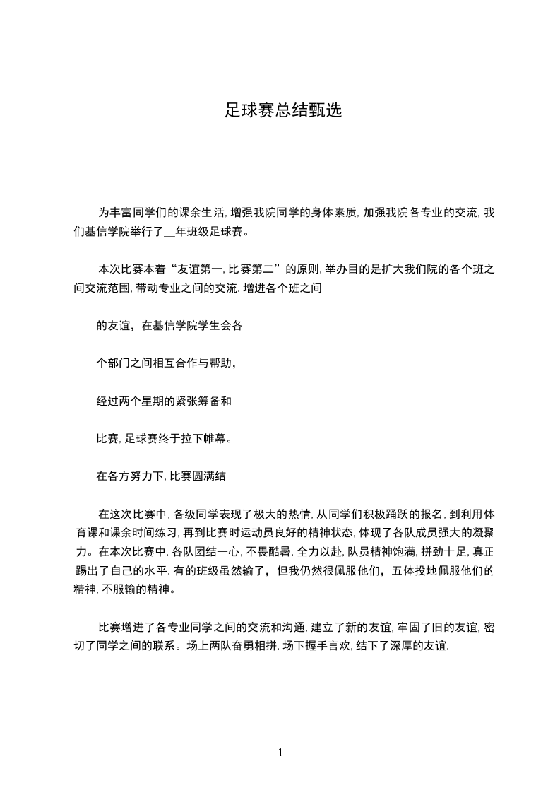 经验,吸取不足之处的教训,希望下一次的足球赛搞的更好。