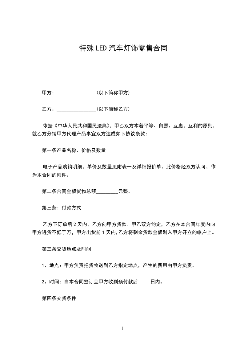 第二条合同金额货物总额_________元整。