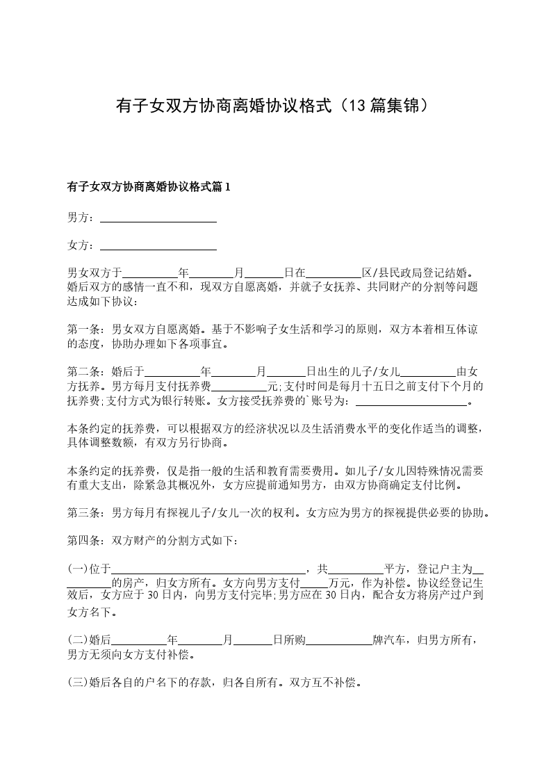 六、本协议书一式三份,男女双方各执一份,婚姻登记机关存档一份。