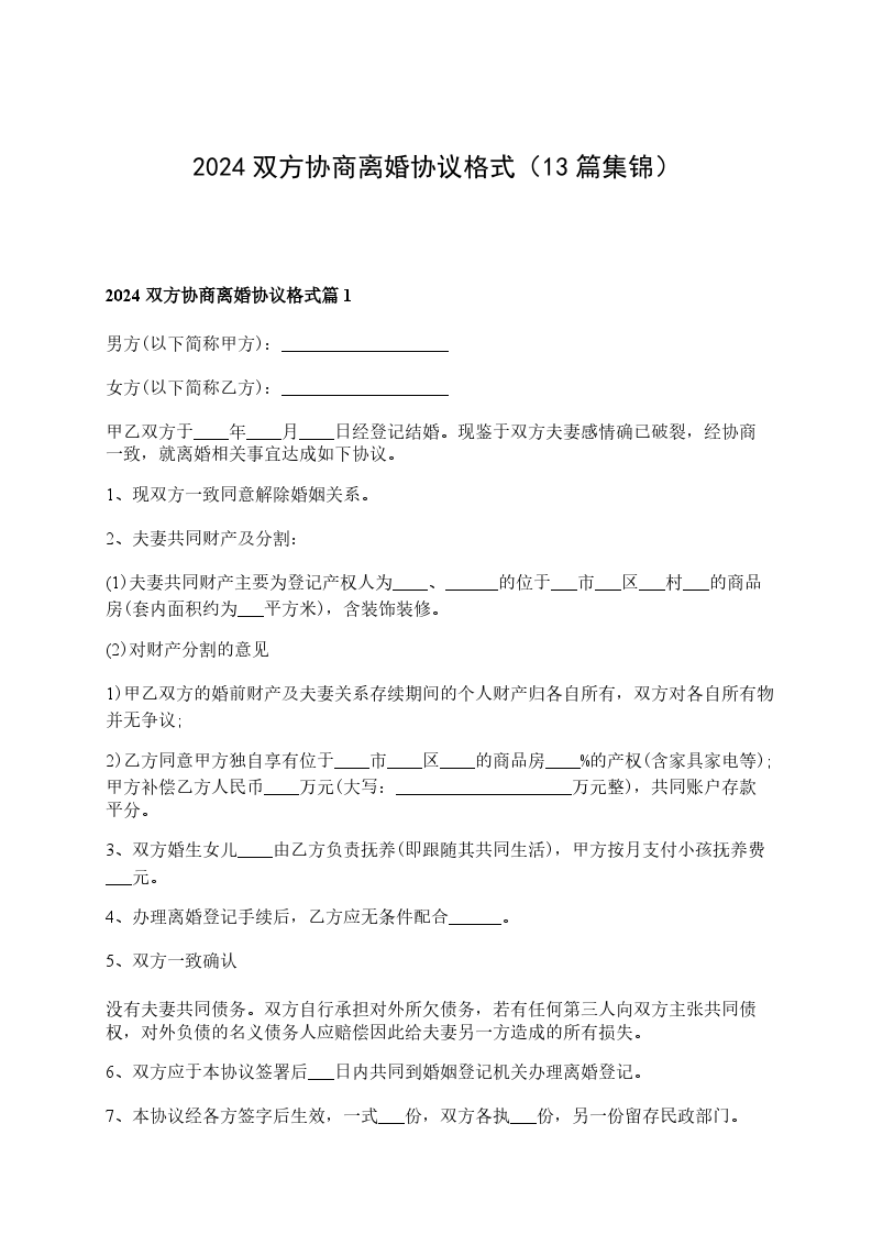 本协议一式三份。男、女双方各执一份,婚姻登记机关存档一份,自婚姻登记机颁发《离婚证》之日起生效。