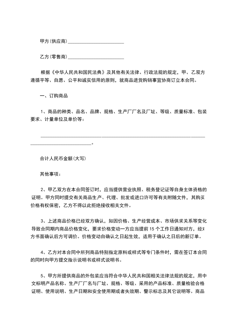 购货方:________(以下简称甲方)