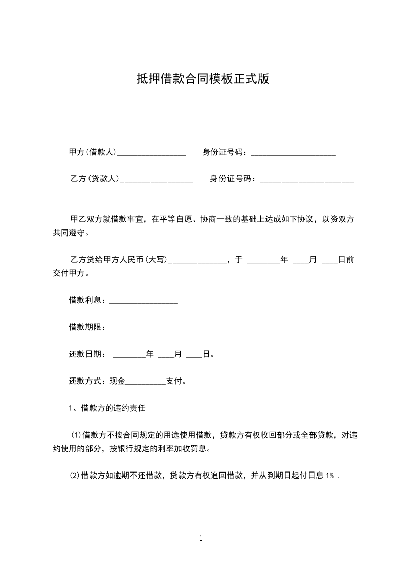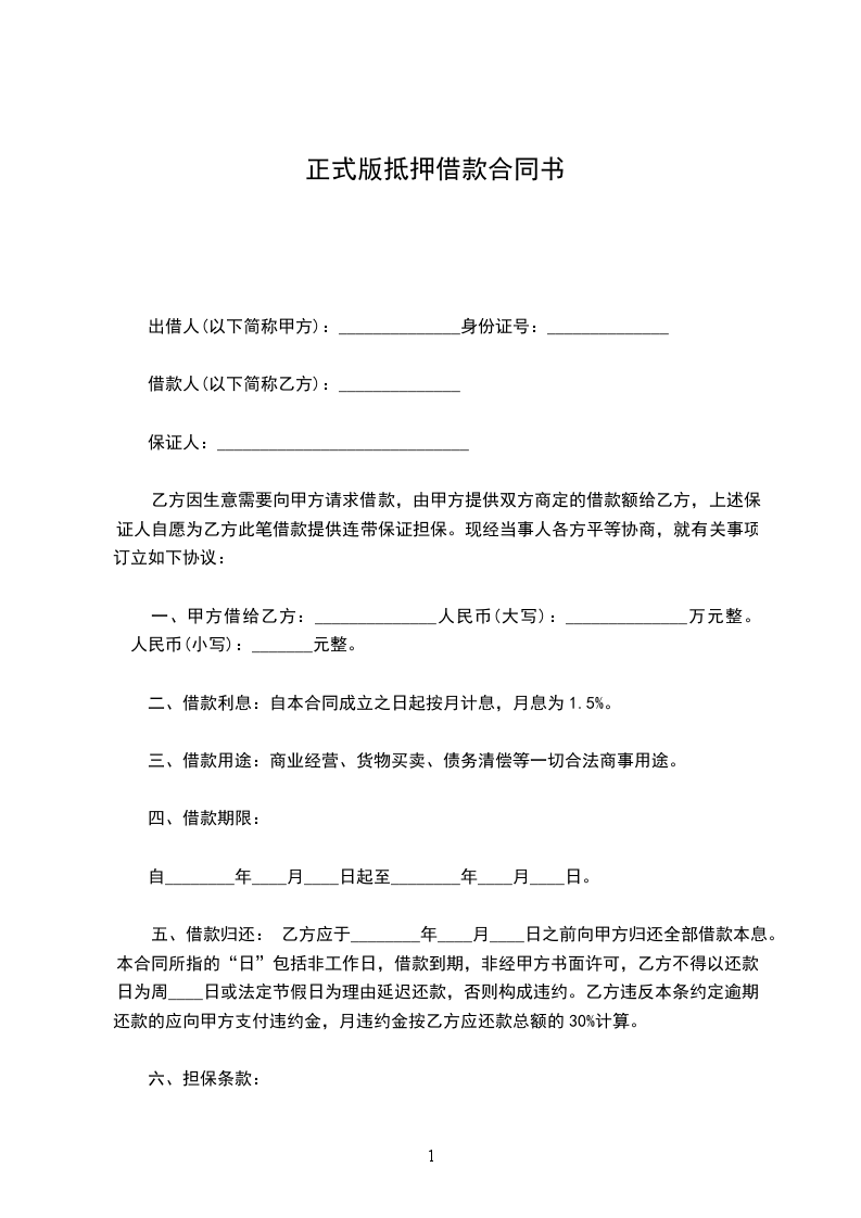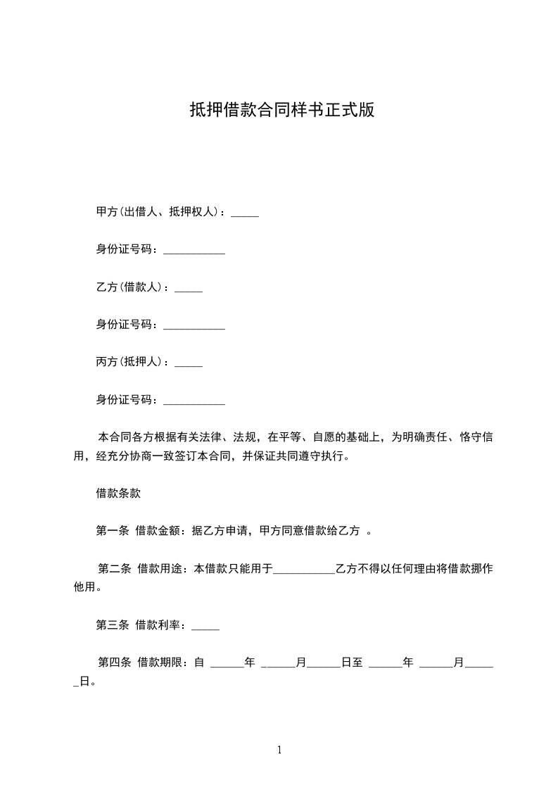 1、借款方自愿用_____做抵押,到期不能归还贷款方的贷款,贷款方有权处理抵押品。借款方到期如数归还贷款的,抵押权消灭。