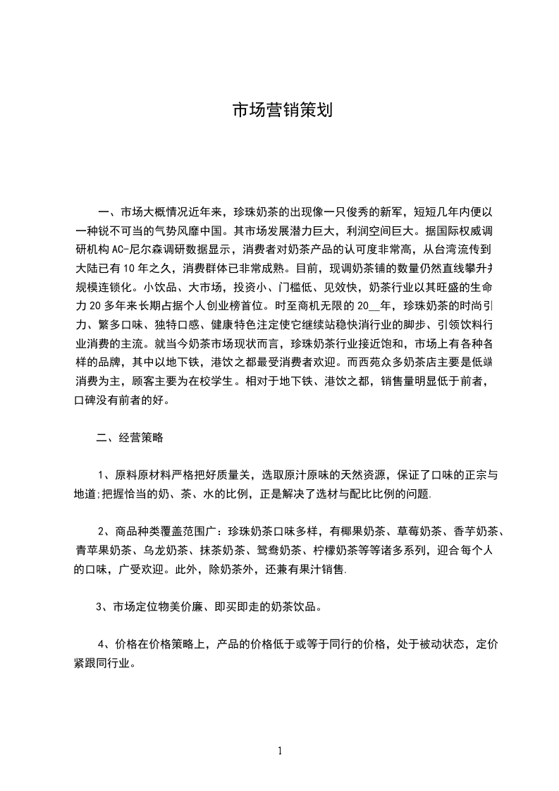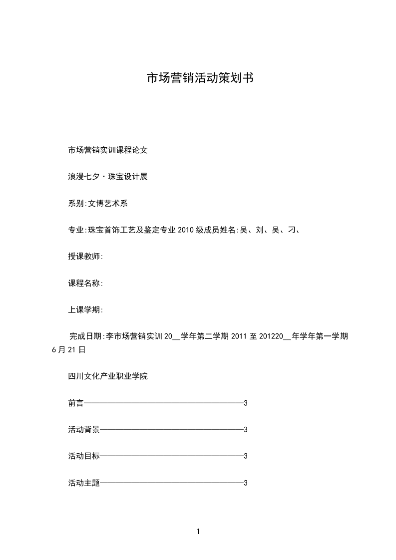 市场营销实训课程论文