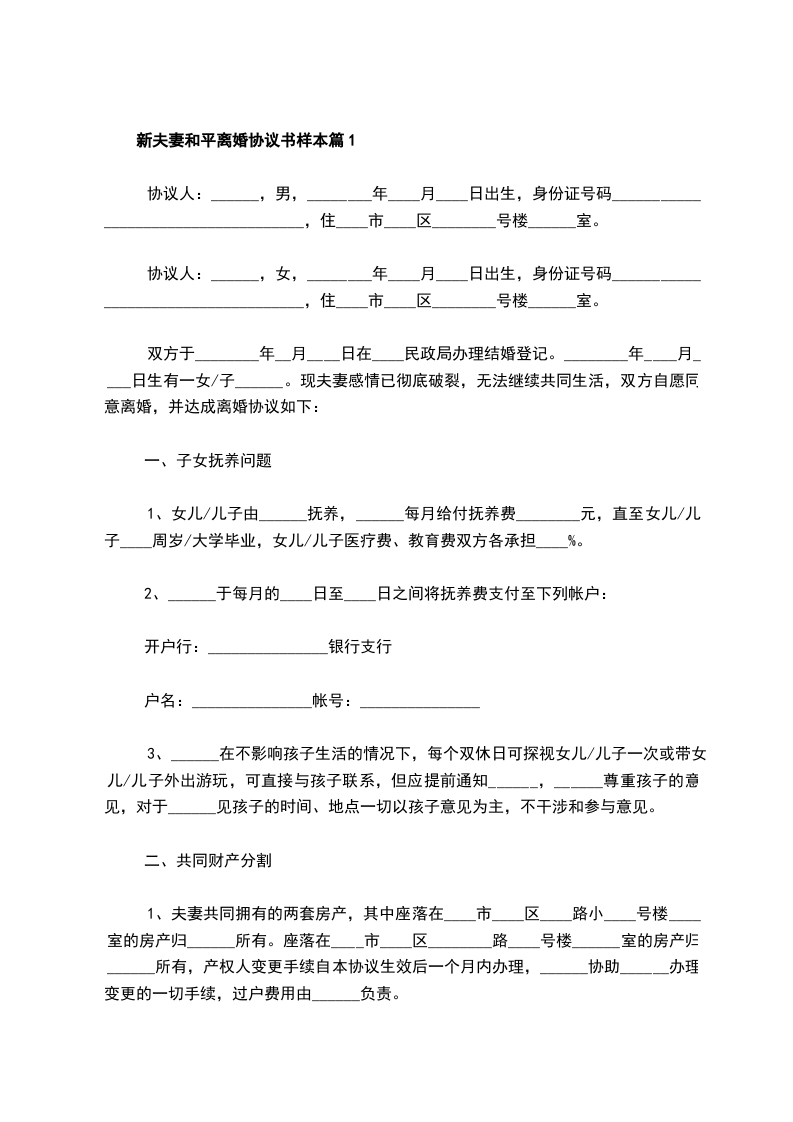 5.此协议一式___份,男女双方各持___份,交婚姻登记机关___份。自双方签字后生效。