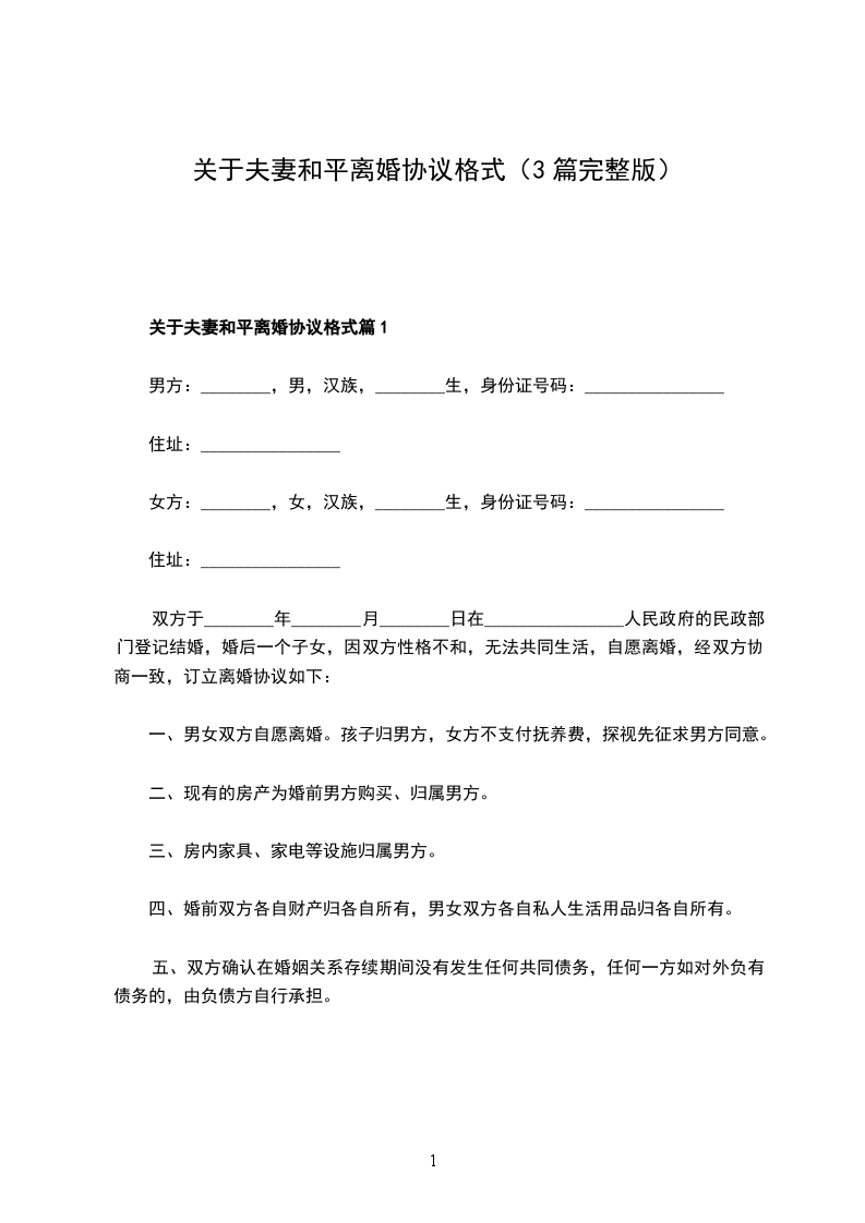 2、本协议一式三份,男女双方各执一份,婚姻登记机关存档一份。