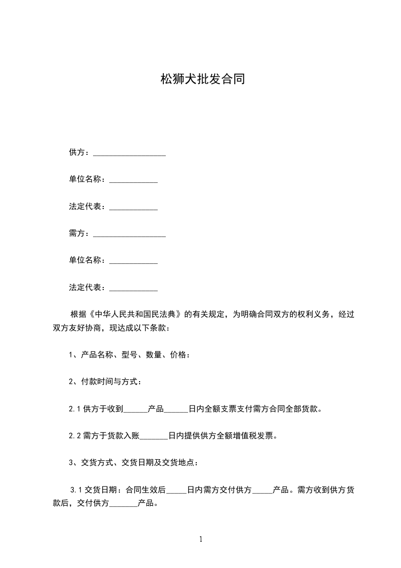 1、交货日期:合同生效后____________日内需方交付供方____________产品。需方收到供方货款后,交付供方____________产品。