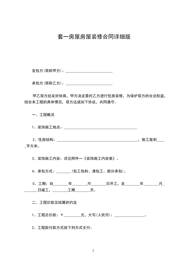 1、工程总价款:¥_________元,大写(人民币):________________。