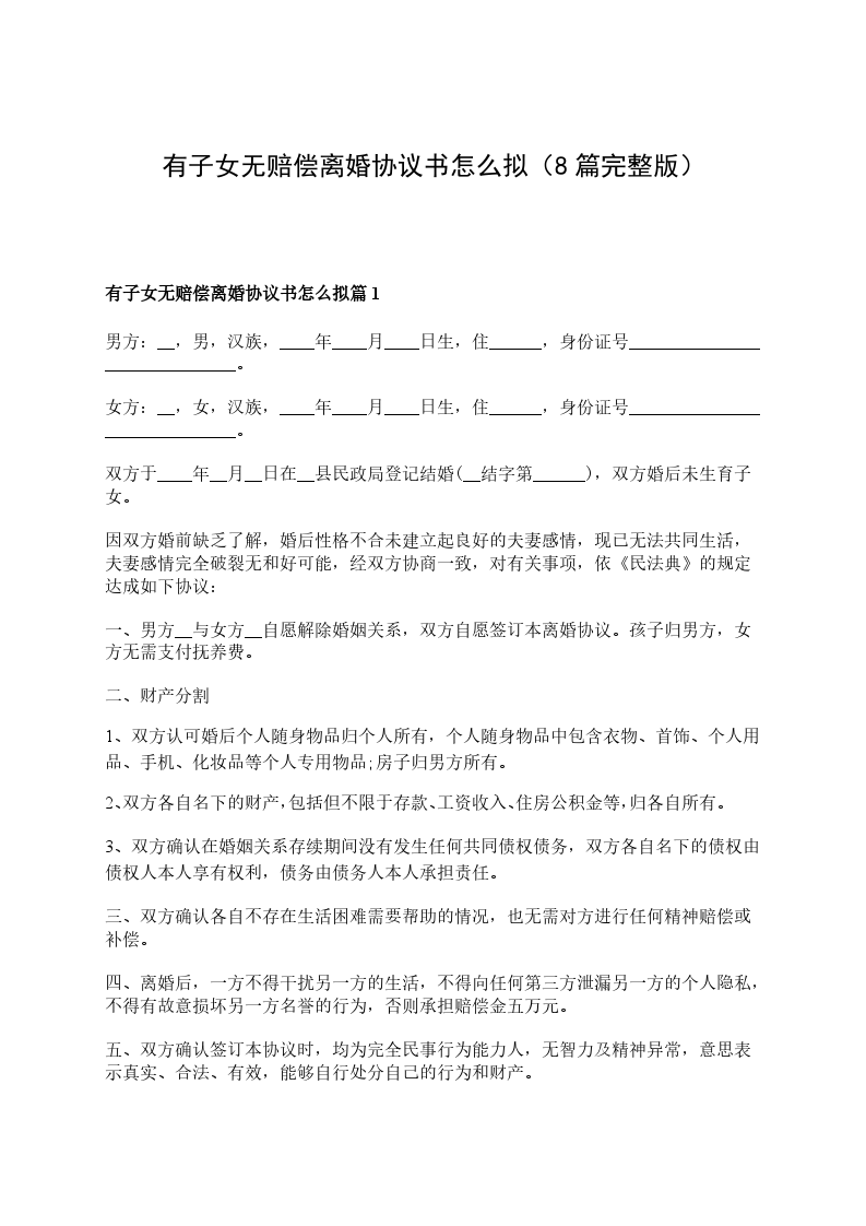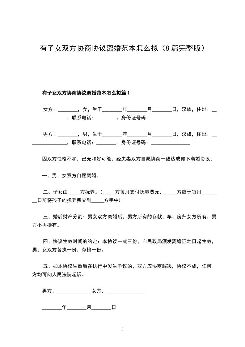 1、双方于__年__月__日生育有一儿子/女儿,取名:______,离婚后儿子/女儿随男方/女方直接抚养生活,由女方/男方每月给付抚养费(包括生活费、教育费、医疗费)______元,在每月__号前付清,直到孩子完成高中教育阶段止。高中教育阶段之后的有关费用双方日后重新协商。
