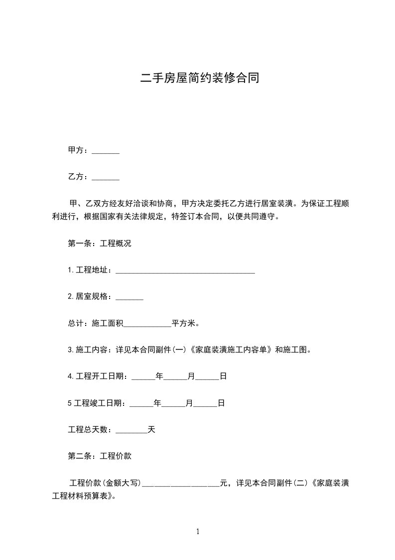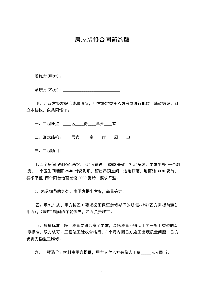 一、工程地点:____区____街____单元____室