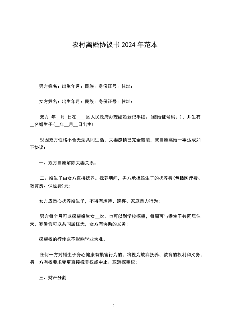 男方:×××,汉族,25岁,××省××县××乡××村人,住本村。