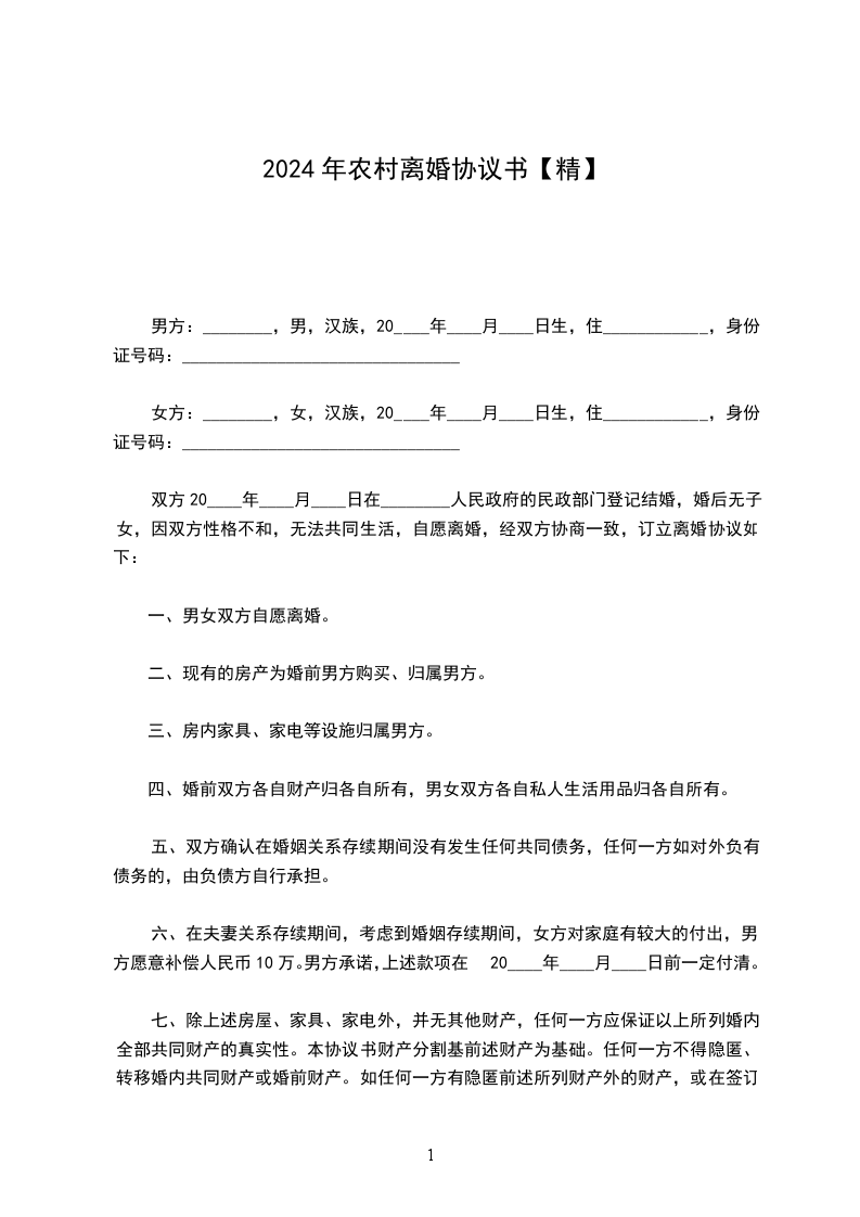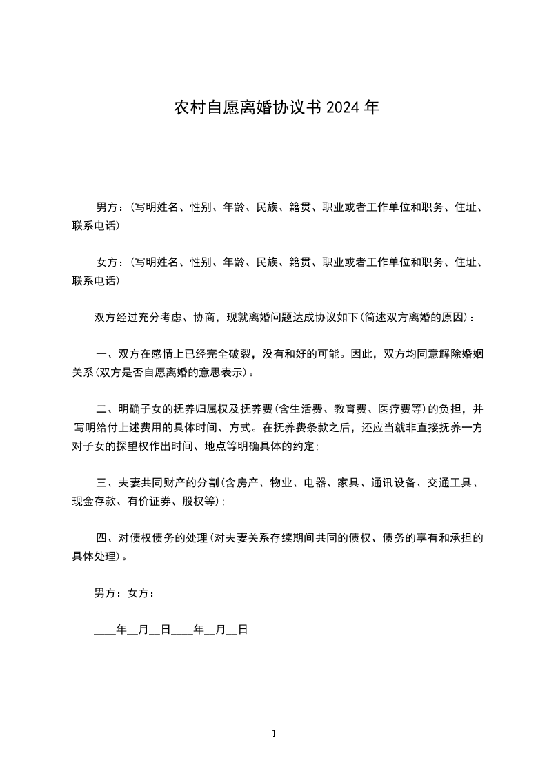 5、此协议一式三份,男女双方各持一份,交婚姻登记机关一份。自双方签字后生效。