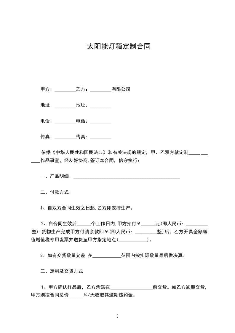 产品名称____________、型号____________、(规格____________)、单位________、数量____________、单价____________、金额________、交货时间____________、序号产品名称____________、规格型号________________。