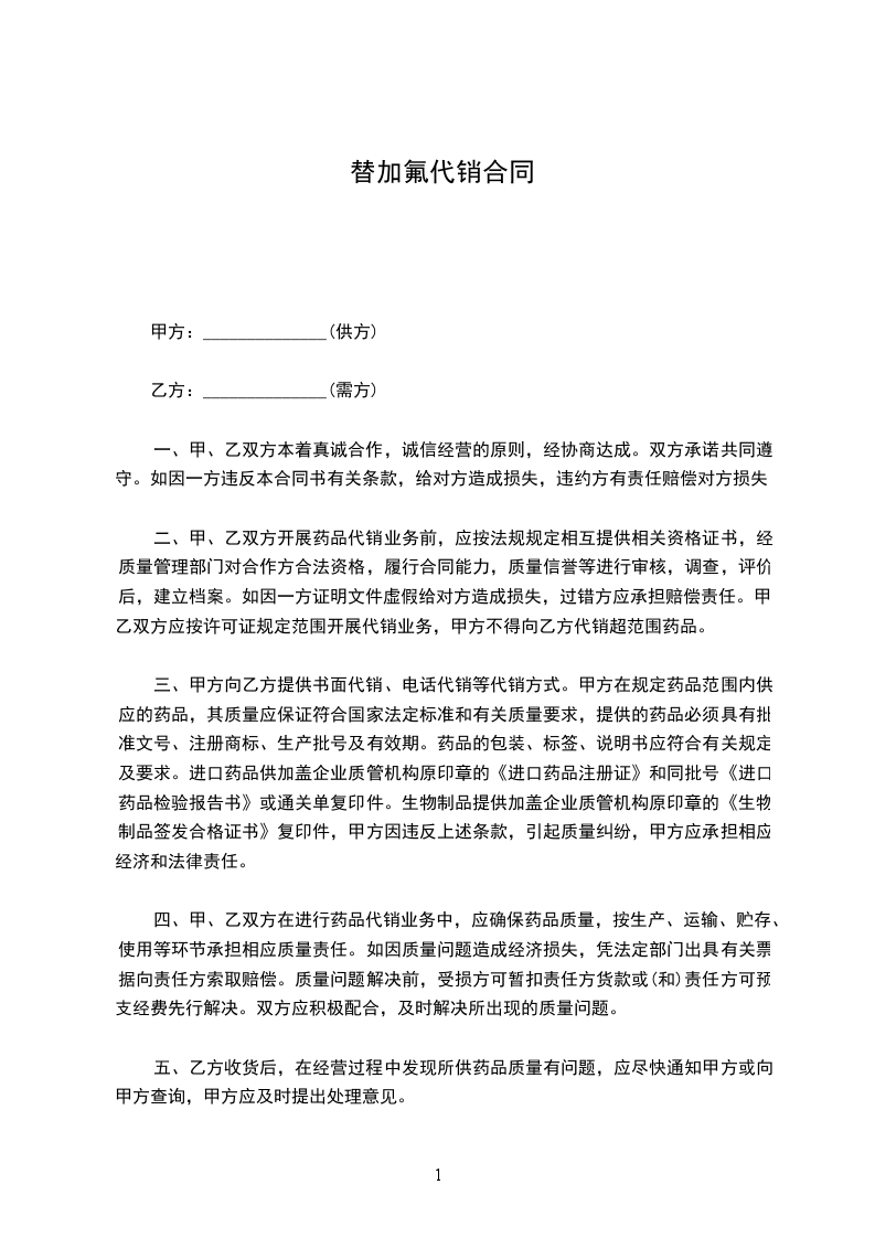五、乙方收货后,在经营过程中发现所供药品质量有问题,应尽快通知甲方或向甲方查询,甲方应及时提出处理意见。