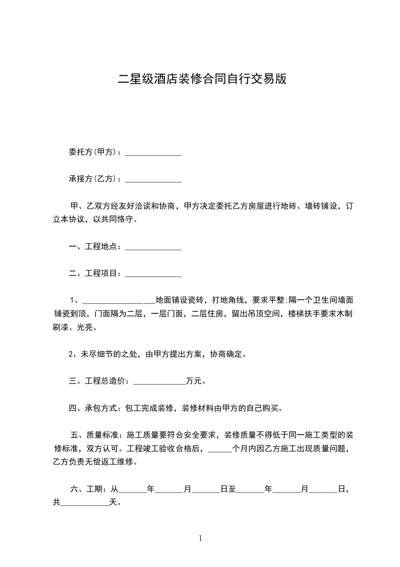 1、__________________地面铺设瓷砖,打地角线,要求平整;隔一个卫生间墙面铺瓷到顶,门面隔为二层,一层门面,二层住房,留出吊顶空间,楼梯扶手要求木制、刷漆、光亮。