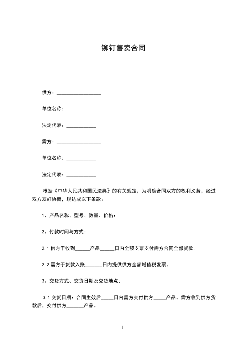 双面撞钉售卖合同