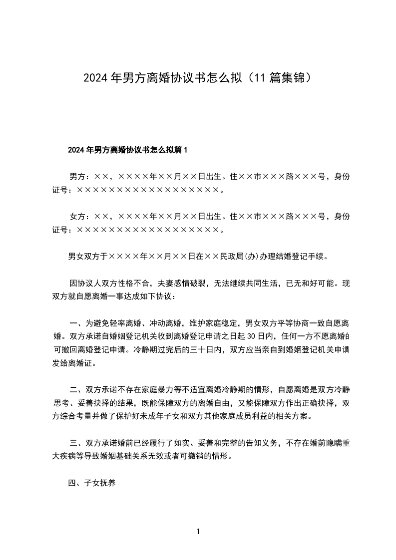 2024男方离婚协议怎么拟篇2