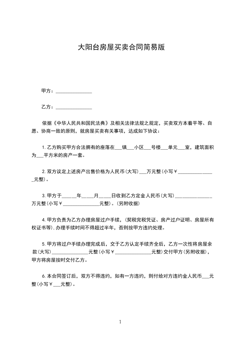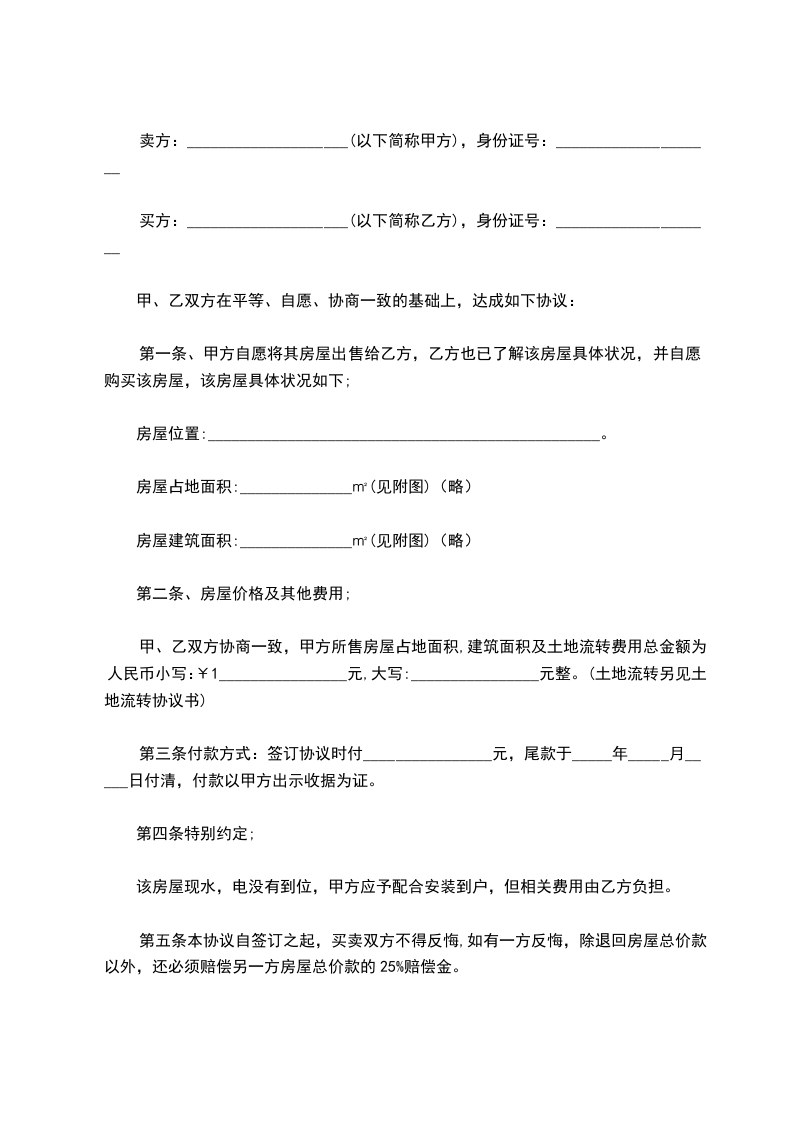 依据《中华人民共和国民法典》及相关法律、法规之规定,甲乙双方在平等、自愿的原则,就房屋买卖事项,经协商一致,并经房屋宅基地所有权人同意,达成如下协议: