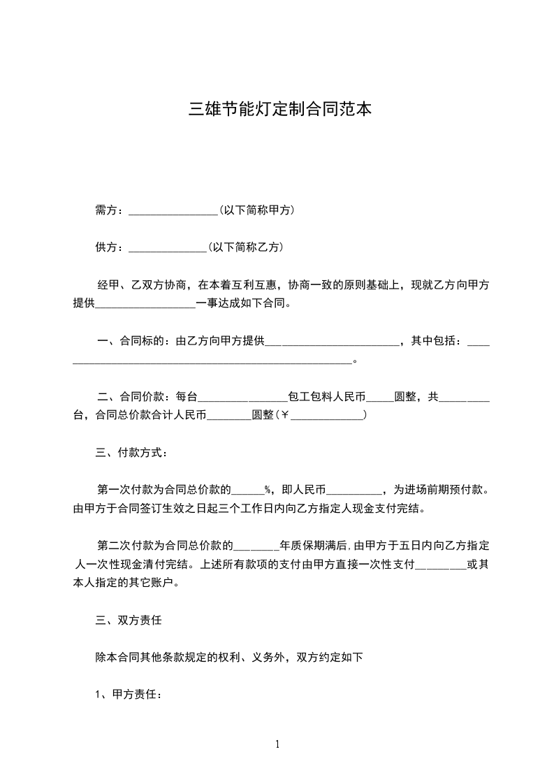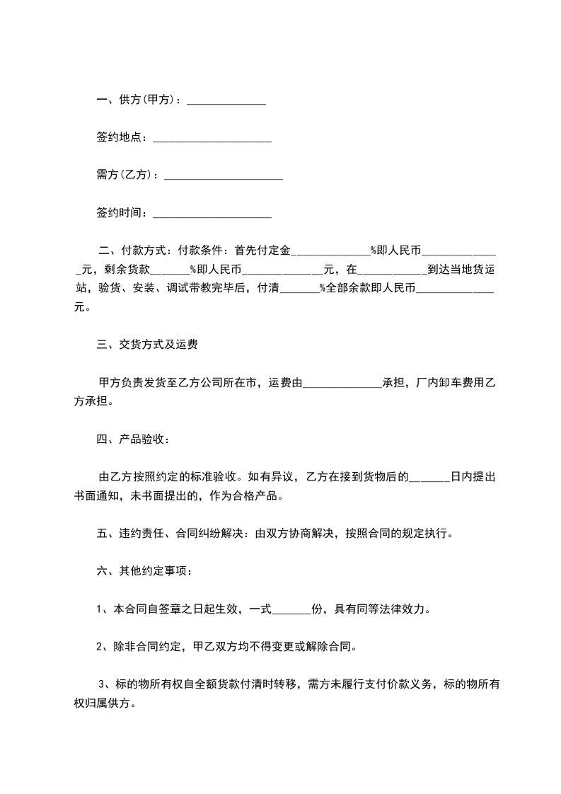 1、交货方式:所有货物由乙方送往双方共同约定的交货地点,乙方只负责从_______________至____________________之间的运输费用。