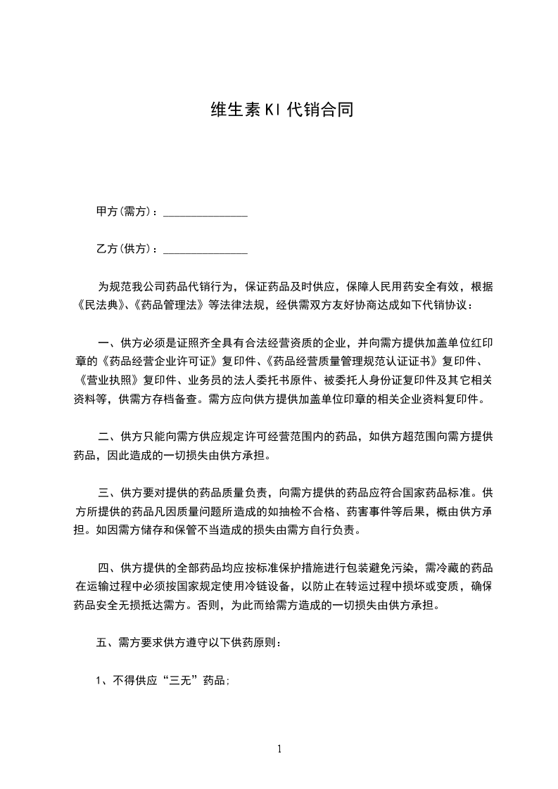 为规范我公司药品代销行为,保证药品及时供应,保障人民用药安全有效,根据《民法典》、《药品管理法》等法律法规,经供需双方友好协商达成如下代销协议: