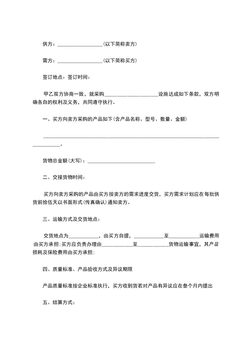 1、交货日期:合同生效后____________日内需方交付供方____________产品。需方收到供方货款后,交付供方____________产品。