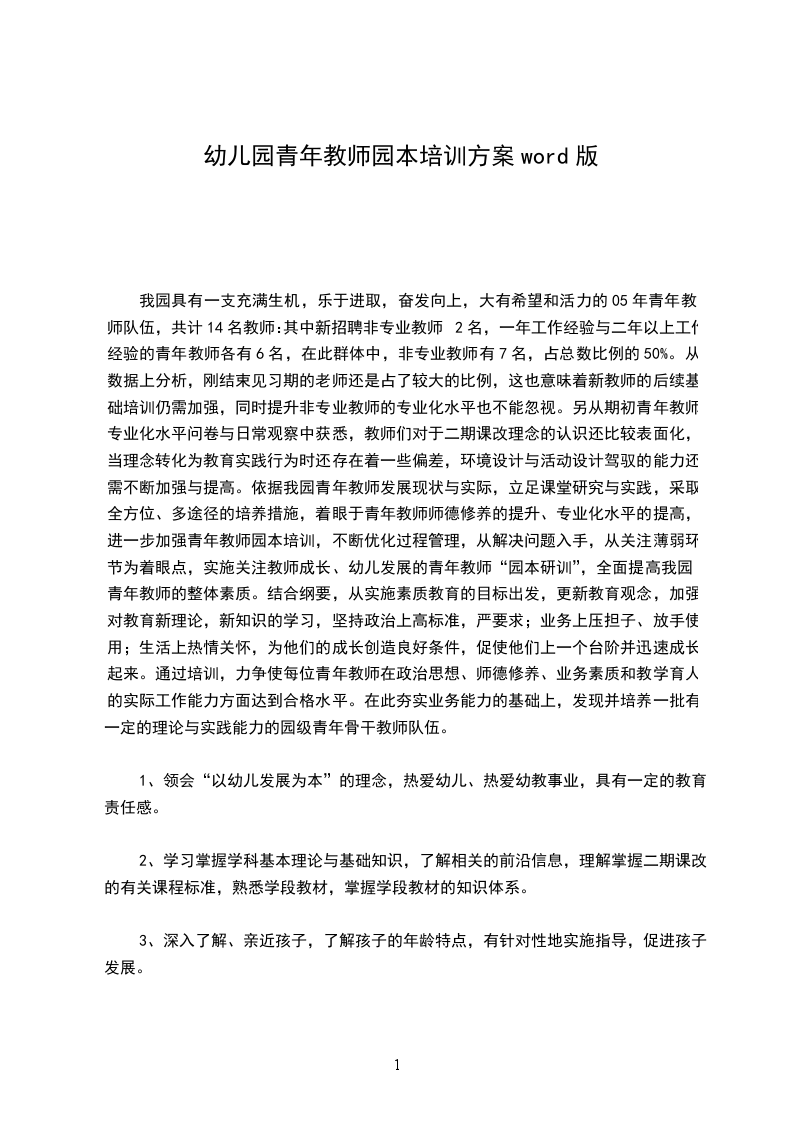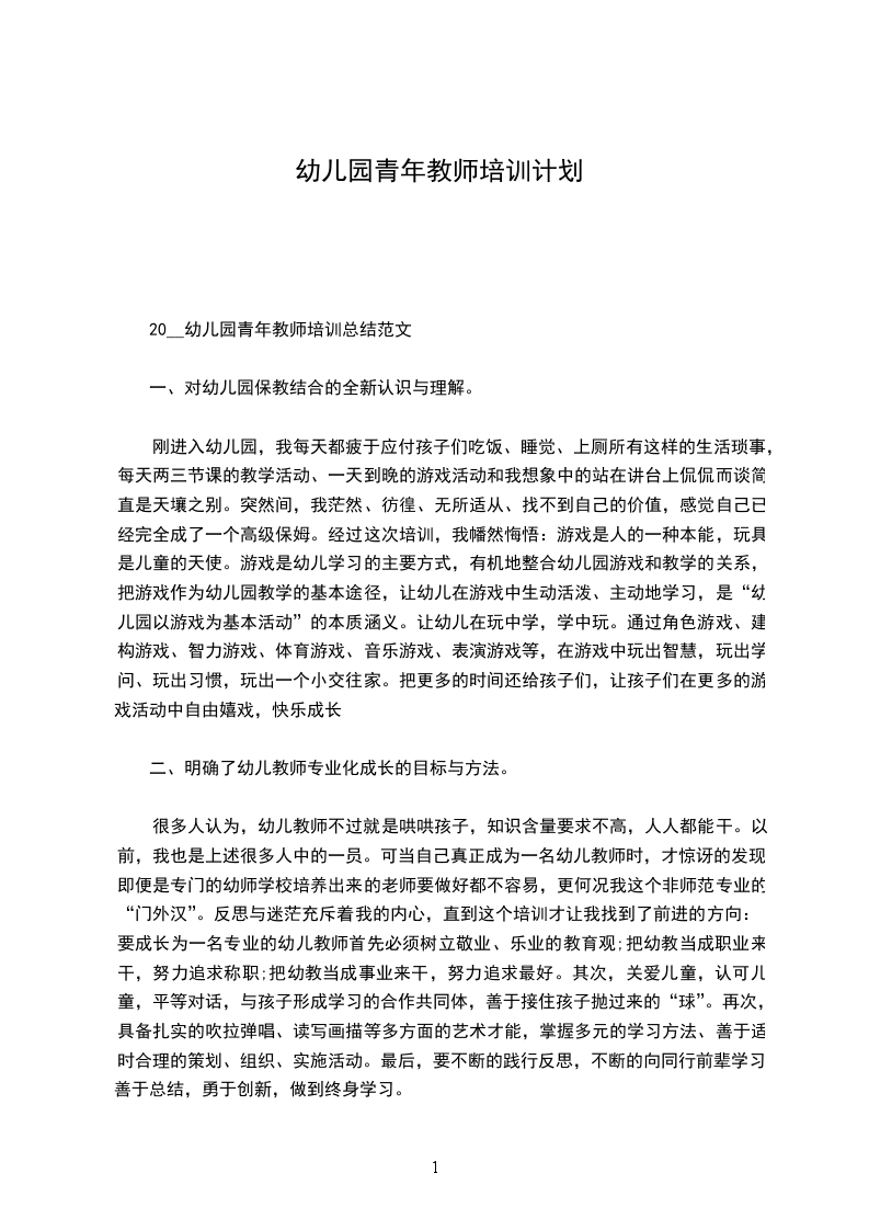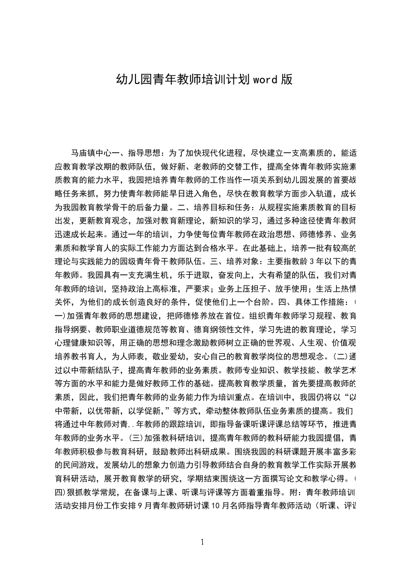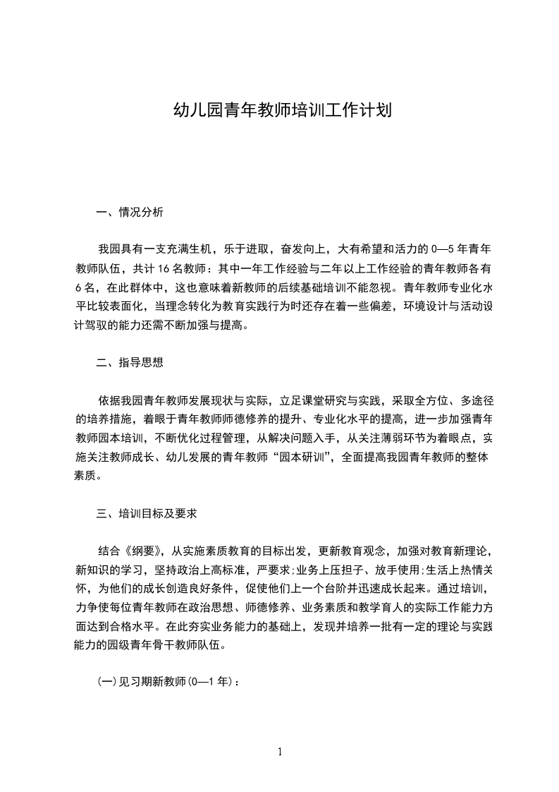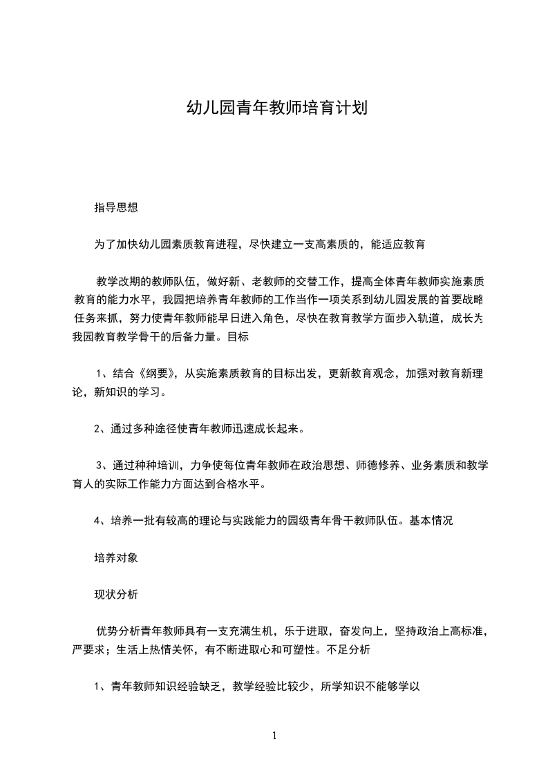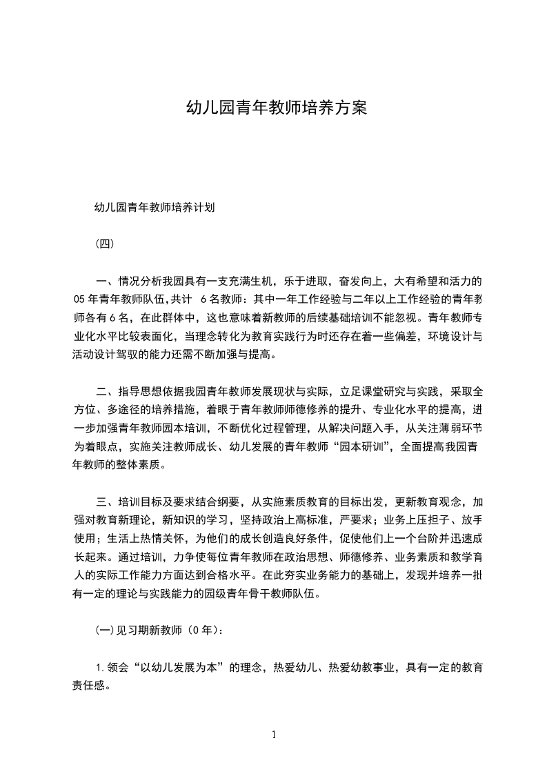 幼儿园青年教师培养计划
