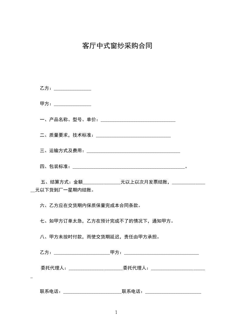 卖方:_____________________(以下简称乙方)