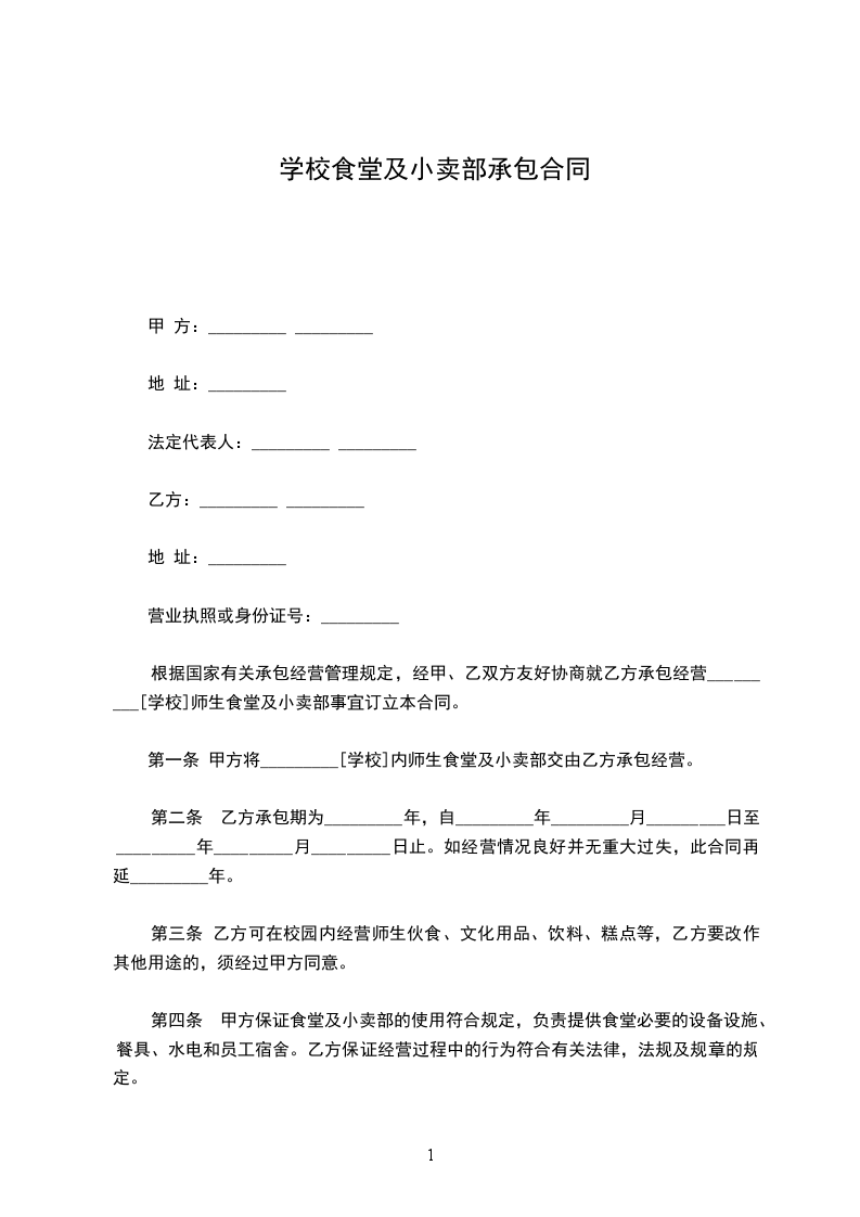 10、食堂、小卖部所办工商登记和经营执照乙方自行负责。