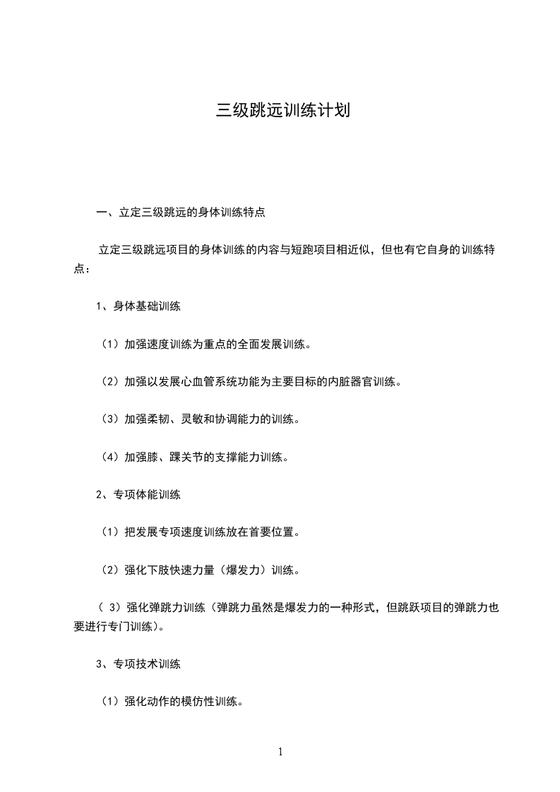 1、周训练中,立定三级跳远训练应安排在100米训练之后和800米训练之前进行;一次训练课中,在准备期和冬训期时,立定三级跳远训练与100米训练可结合进行。