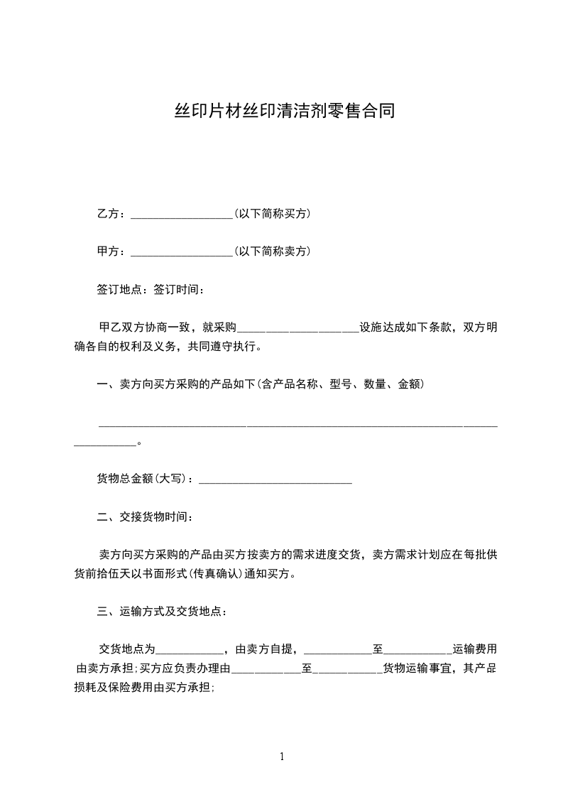 清洁耗材零售合同