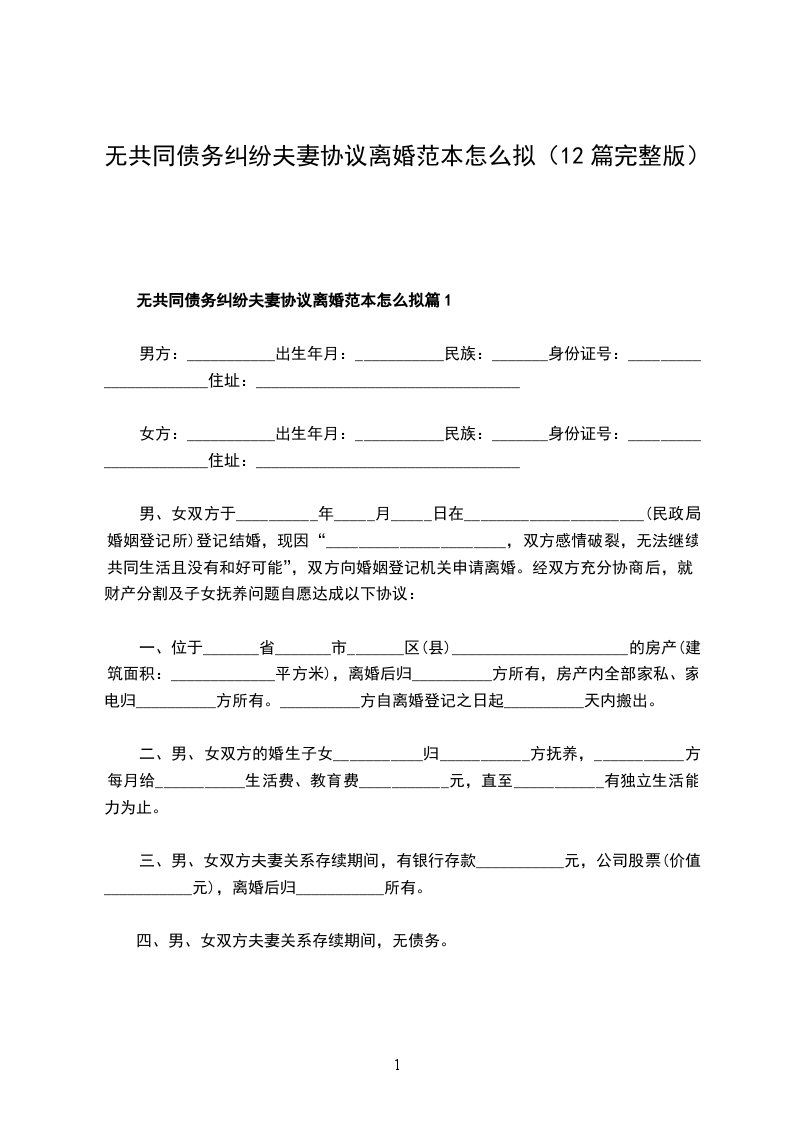 无共同债务纠纷夫妻协议离婚范本怎么拟篇2