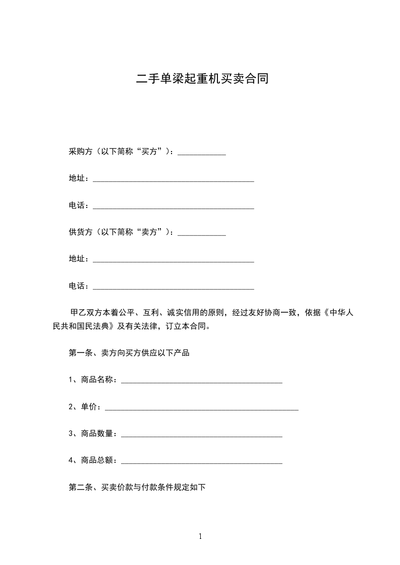 第一条、卖方向买方供应以下产品