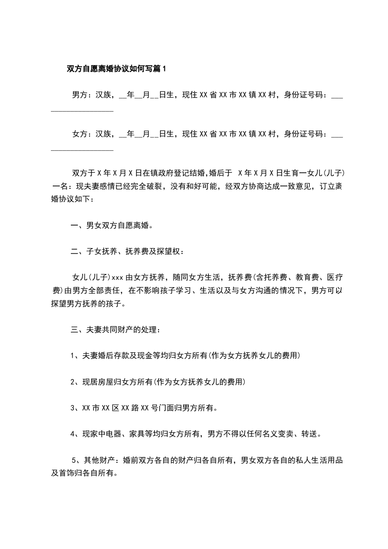 女方:汉族,__年__月__日生,现住XX省XX市XX镇XX村,身份证号码:___________________