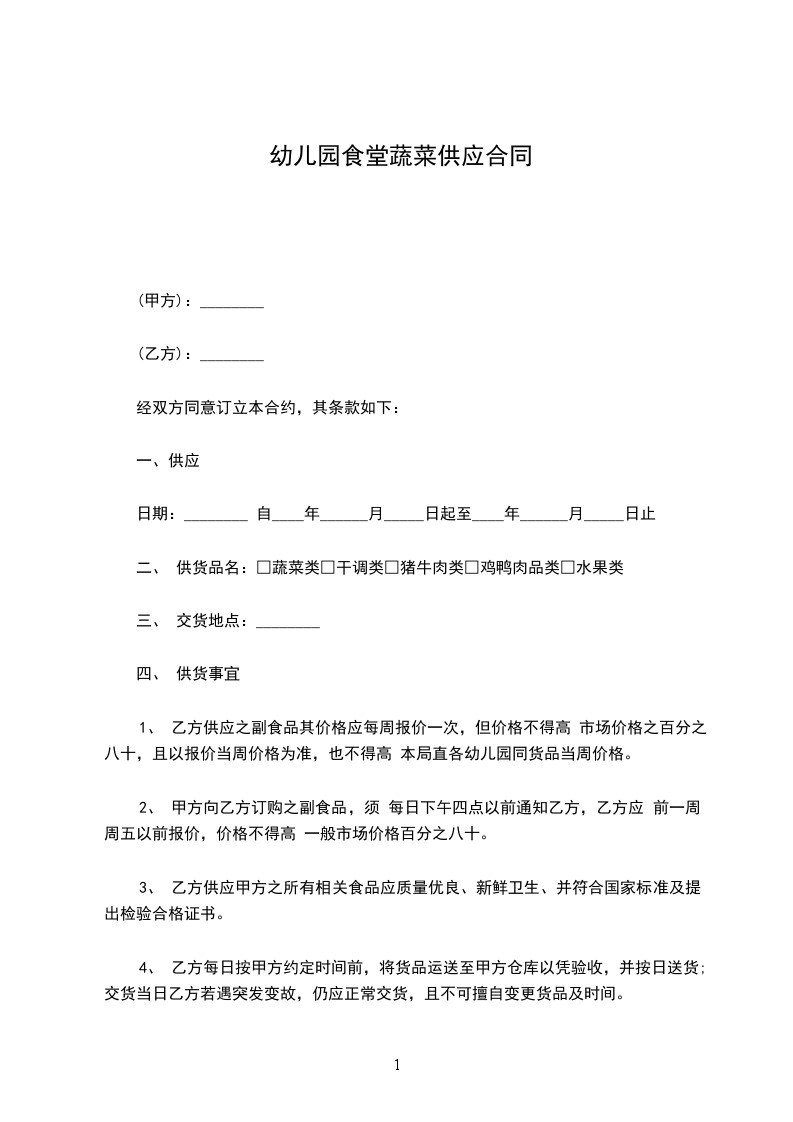 第一条:甲方不得在其它市场购买蔬菜。