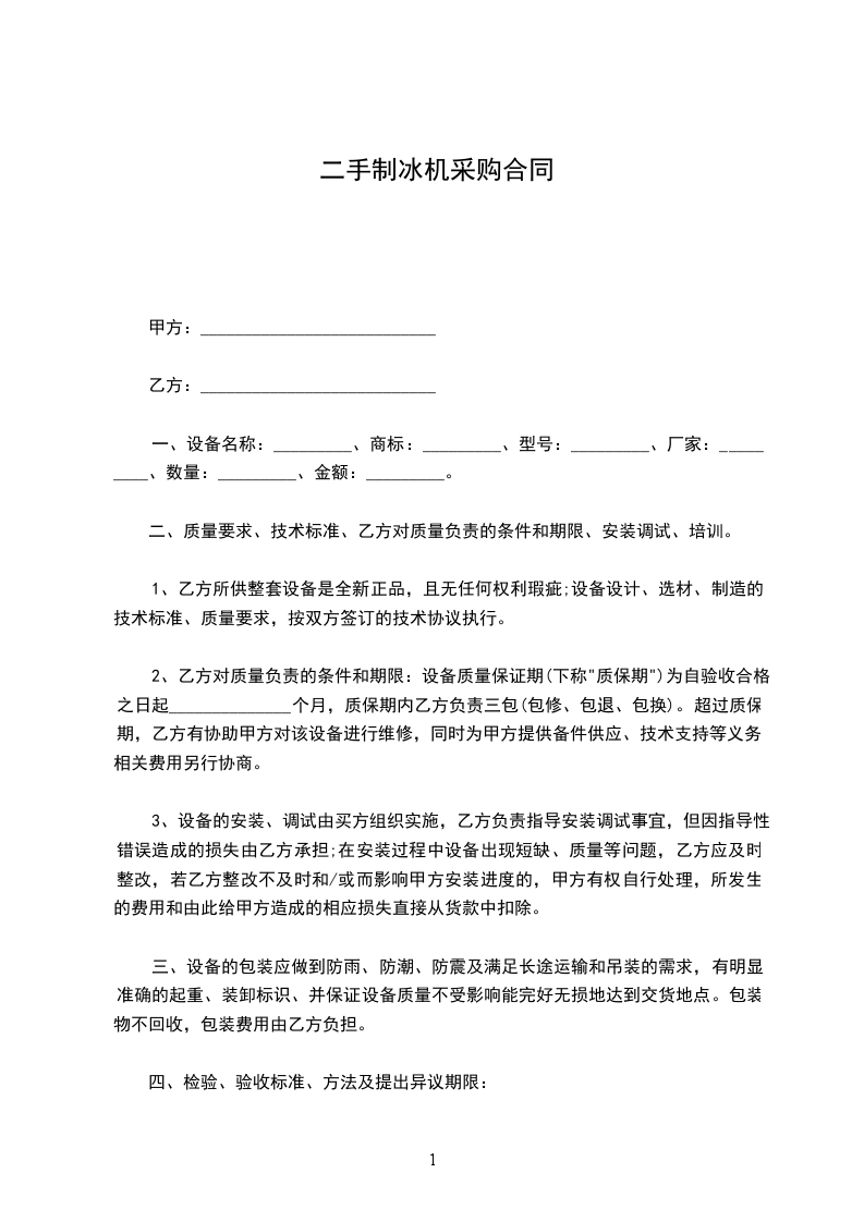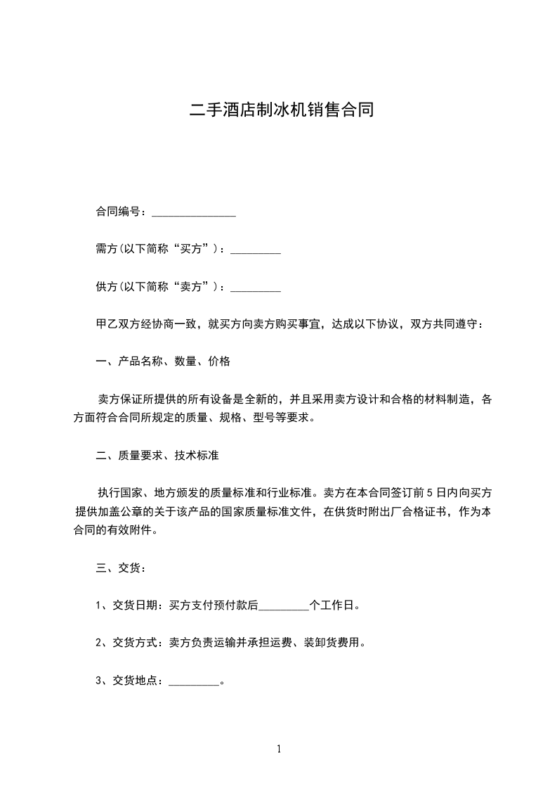 1、交货时间:合同生效后______________日内交货