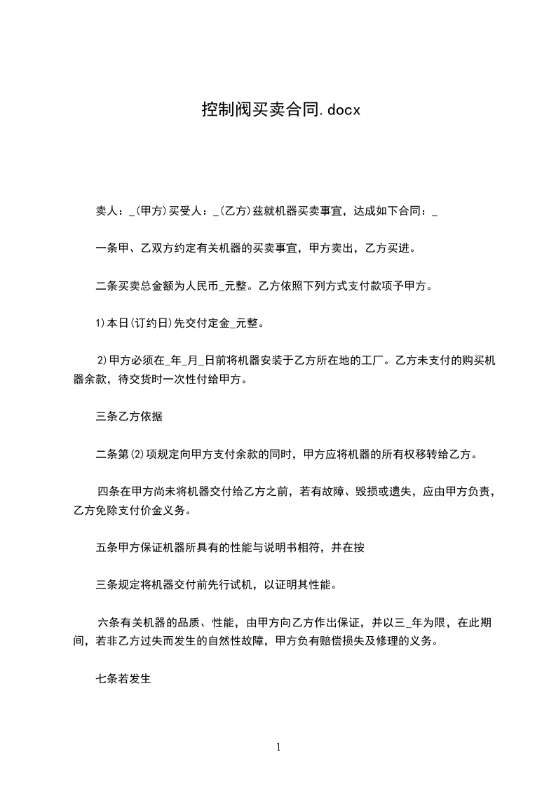 电动控制阀购买合同