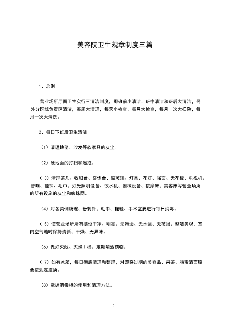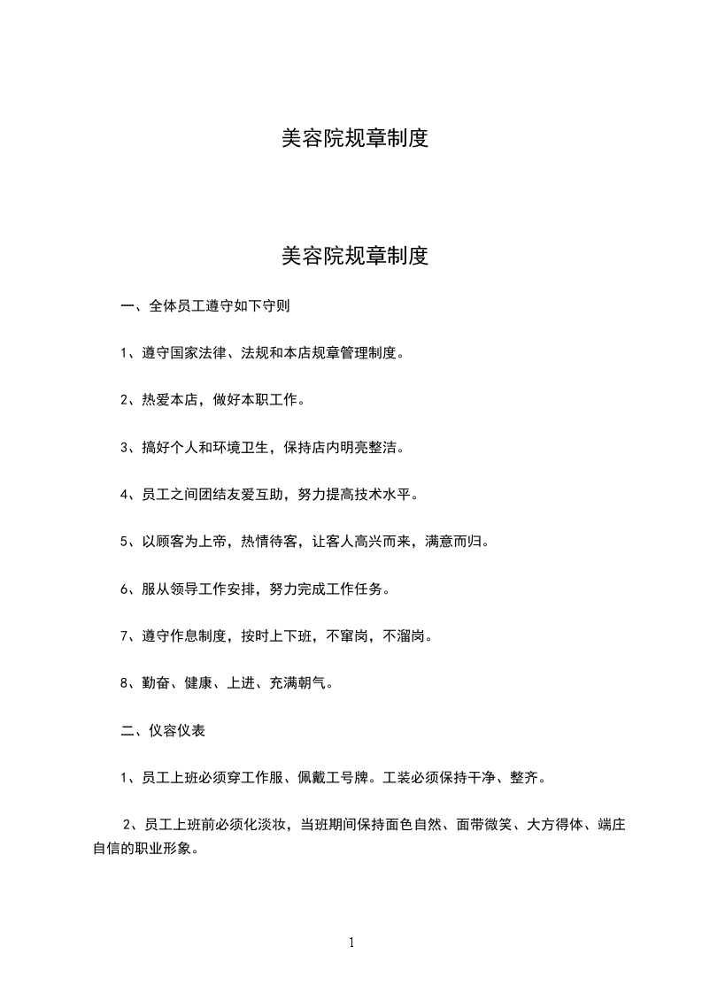 美容院规章制度