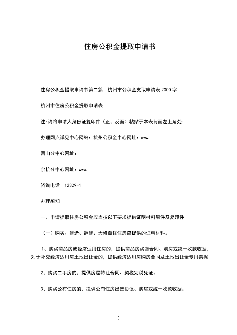 住房公积金提取申请书第二篇:杭州市公积金支取申请表2000字