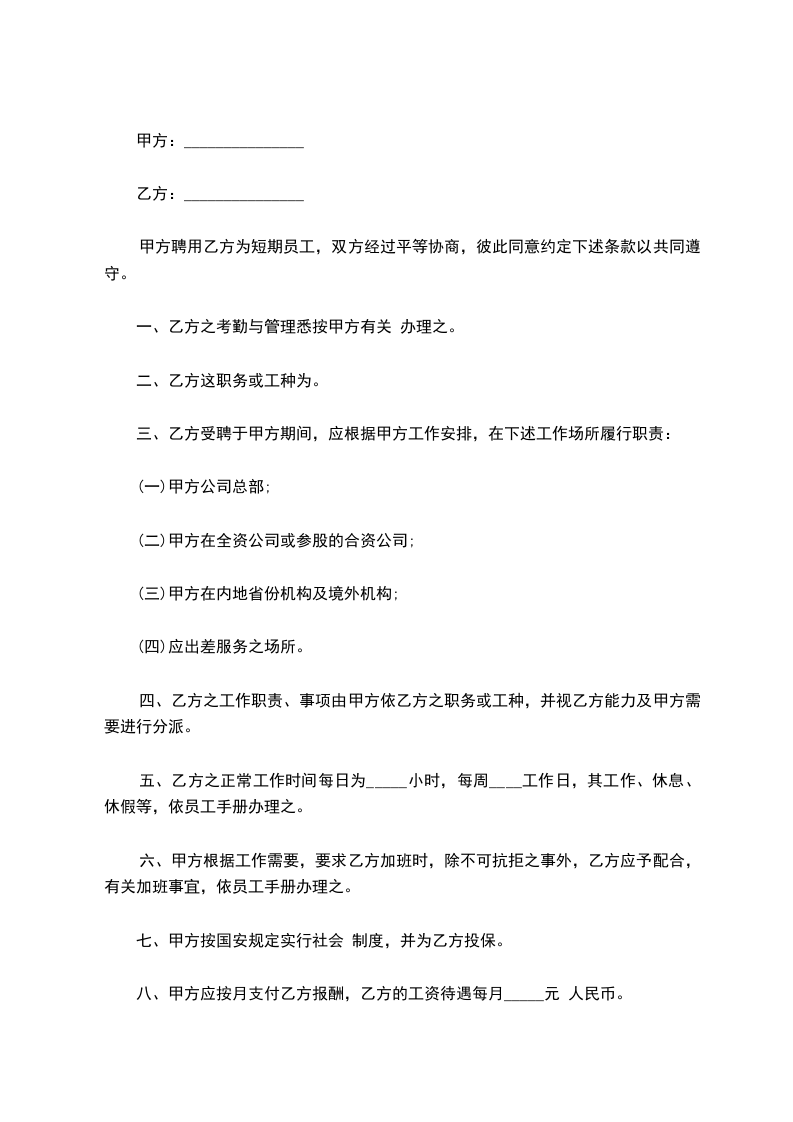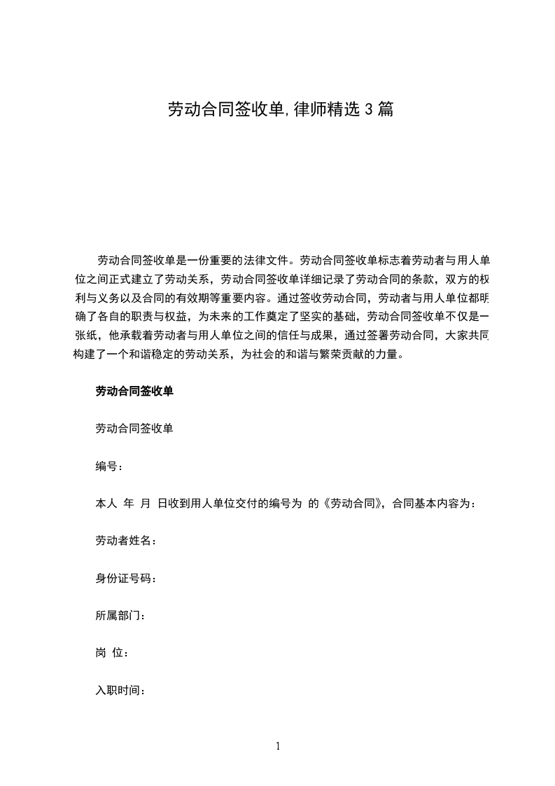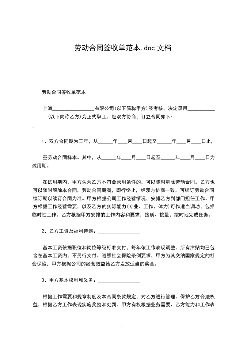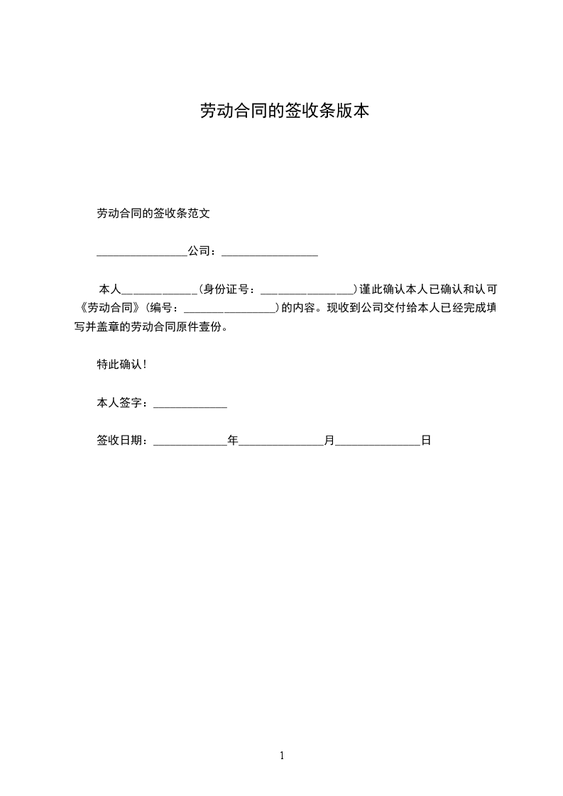 本人 年 月 日收到用人单位交付的编号为 的《劳动合同》,合同基本内容为: