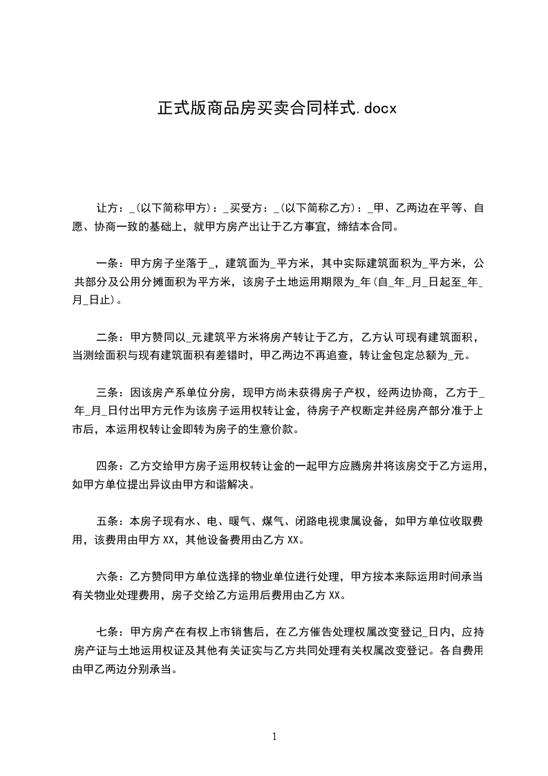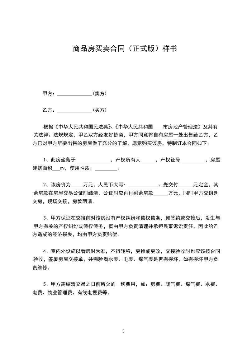 二、商品房售价为人民币________元。其中包括配套的配电室、临时锅炉房、道路、绿化等工程设施的费用,但不包括建筑税和公证费。