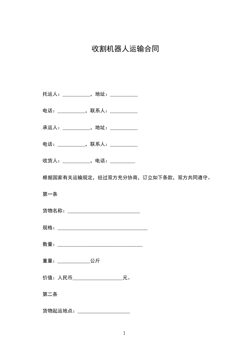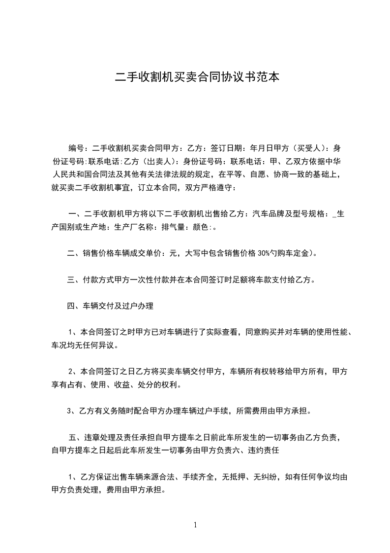 二手收割机器人买卖合同