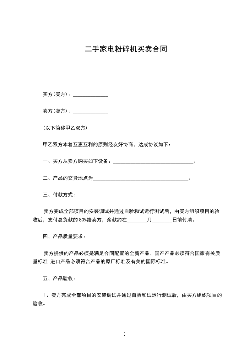 一、买方从卖方购买如下设备:________________________________。
