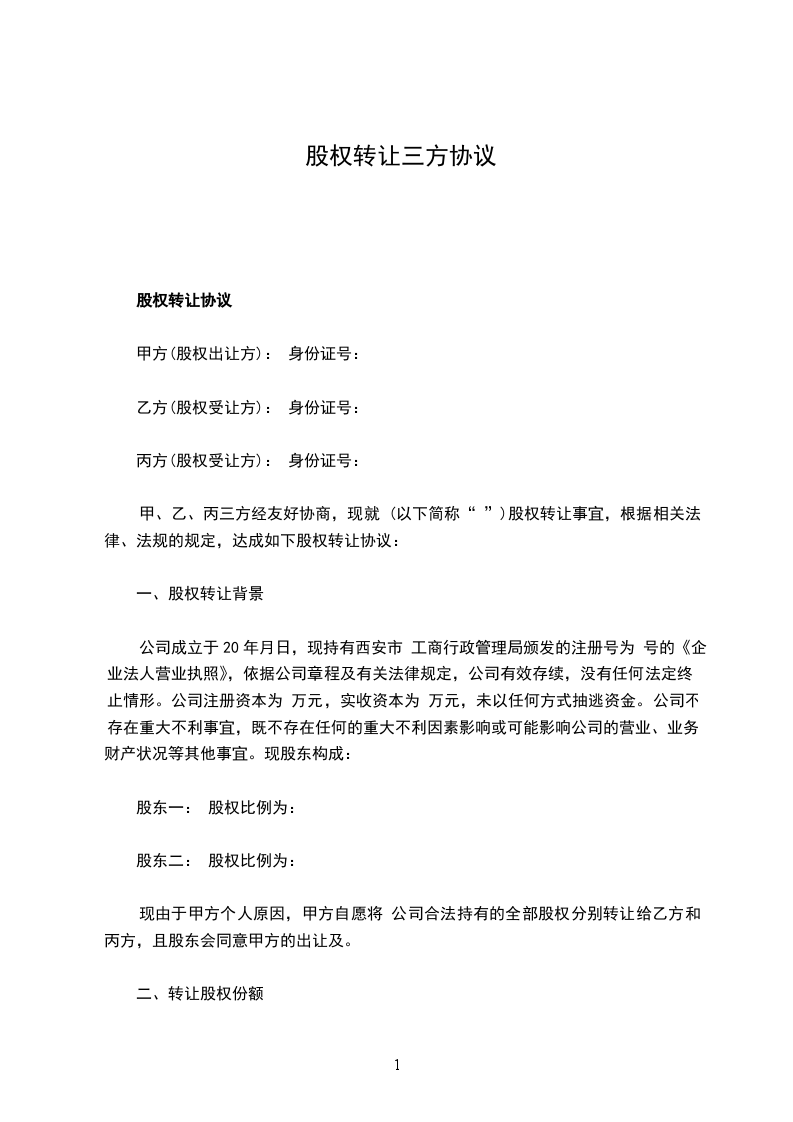 甲、乙、丙三方经友好协商,现就 (以下简称“ ”)股权转让事宜,根据相关法律、法规的规定,达成如下股权转让协议: