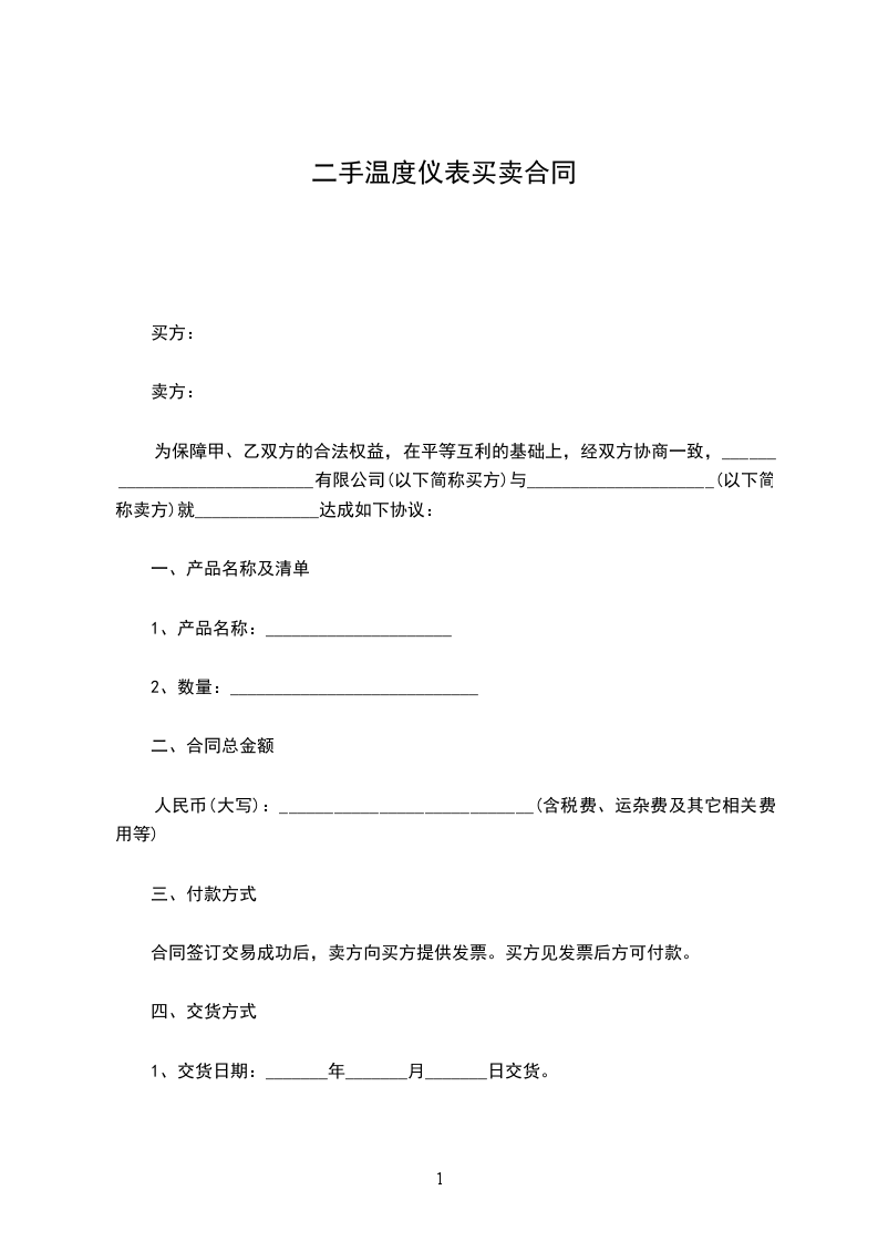 五、付款方式:合同签订后,买方先付合同款的______%订金,货到指定交货地点时再交付合同款的______%,剩余尾款在安装验收完毕______个工作日内付清。