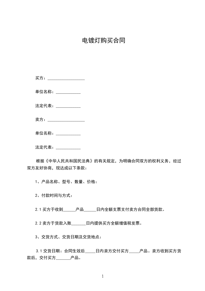 电镀灯购买合同