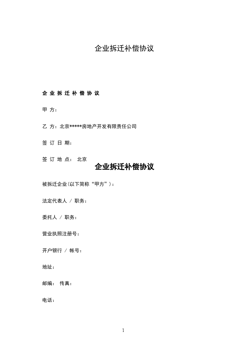 企业拆迁补偿协议