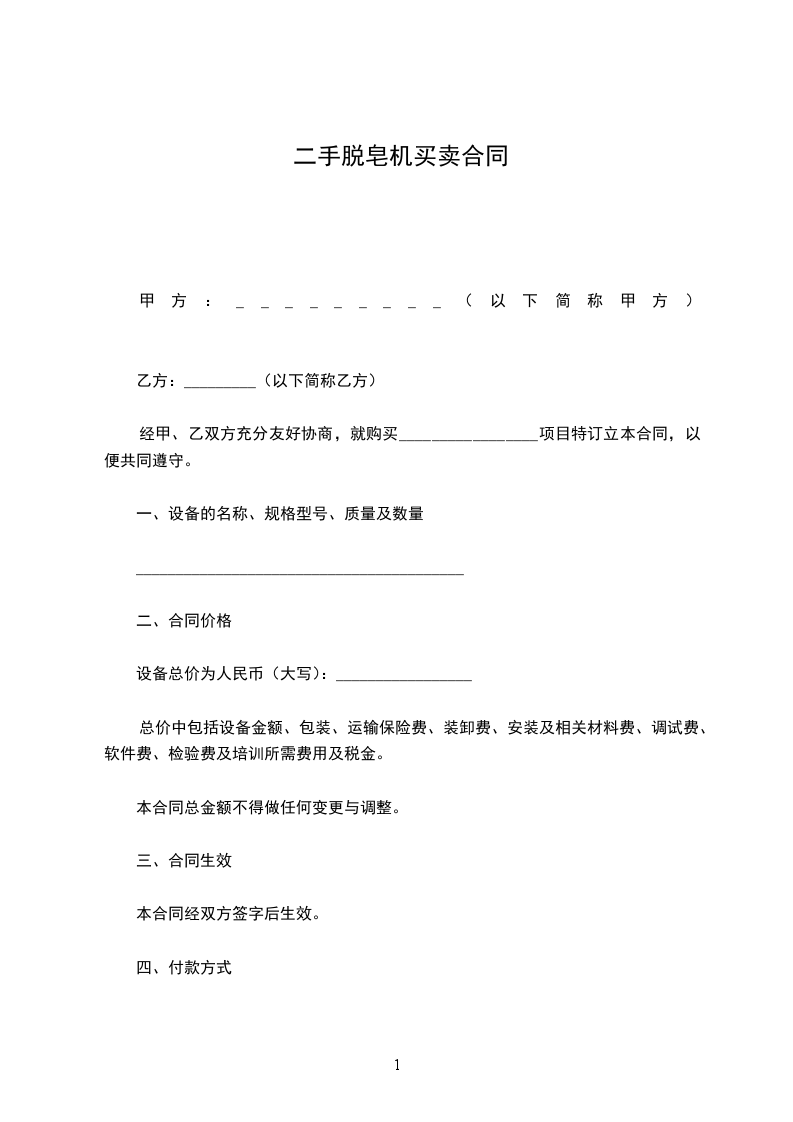 设备总价为人民币(大写):_________________