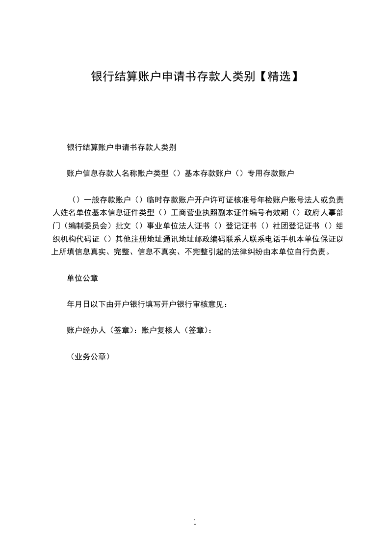 银行结算账户申请书存款人类别