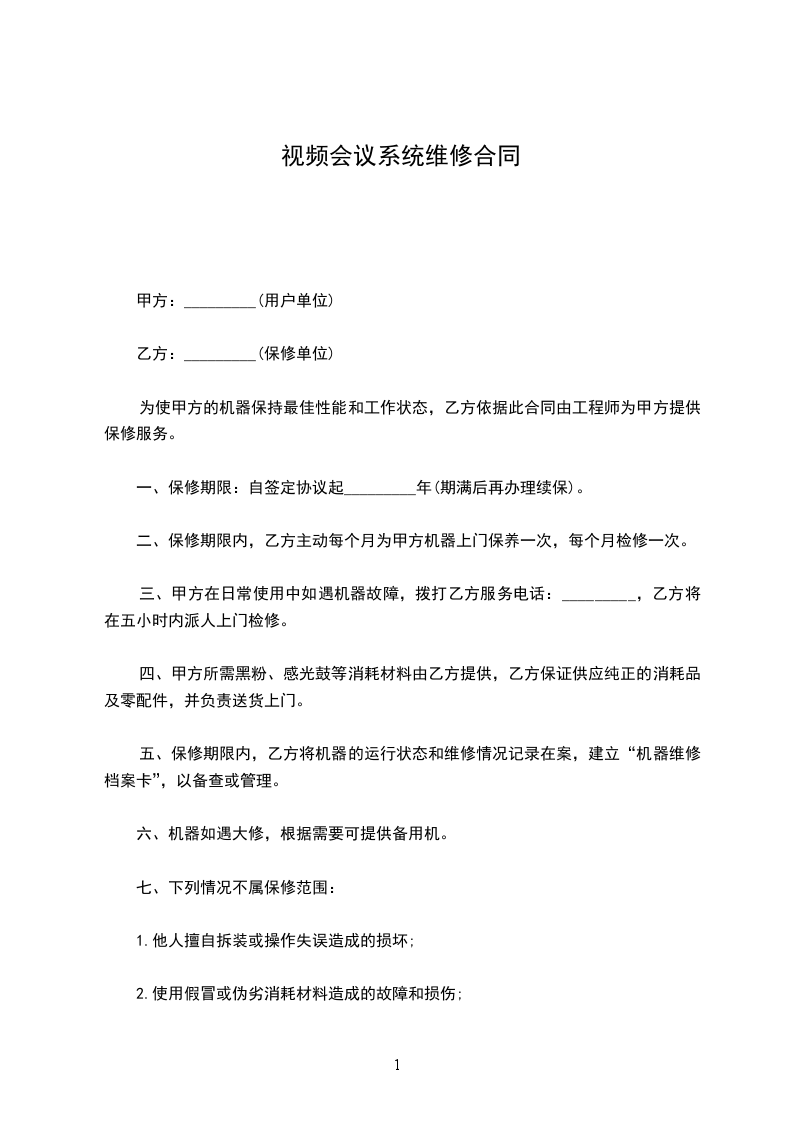 2、供方所售产品的质量保证期为交货后_______年,质量保证期内的产品质量问题由供方负责退换或修理,相关费用由供方承担。质量保证期外的维修供方同意给予配合,费用由需方承担。