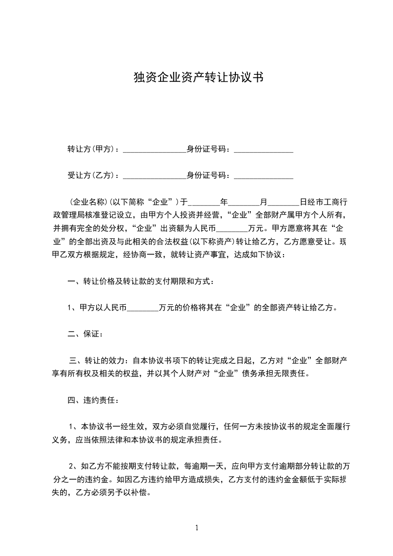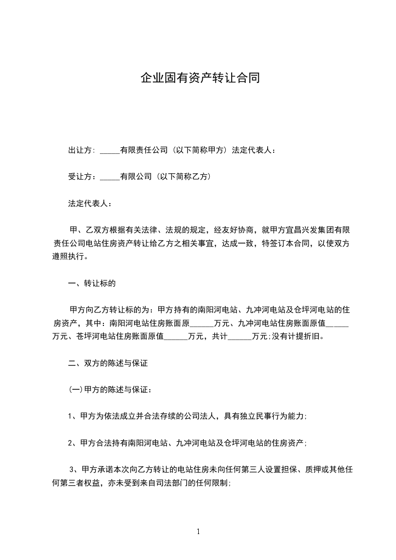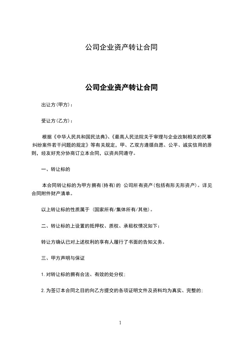 公司企业资产转让合同