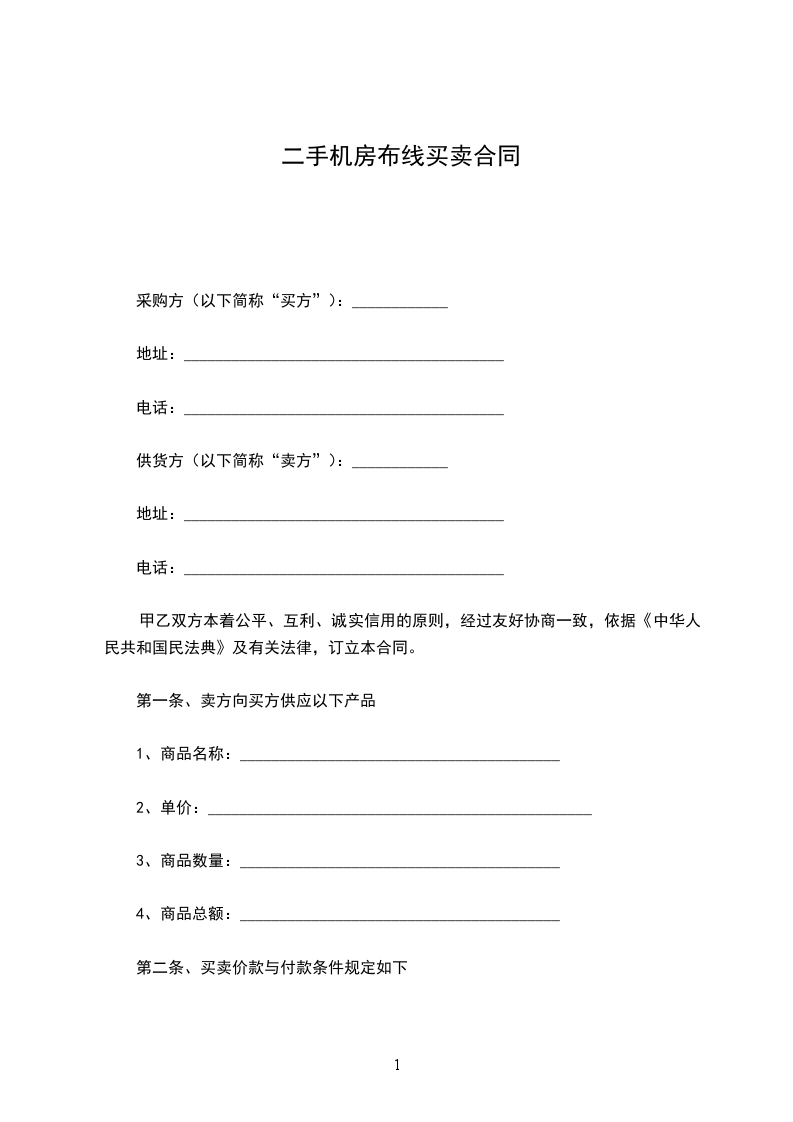 第一条、卖方向买方供应以下产品